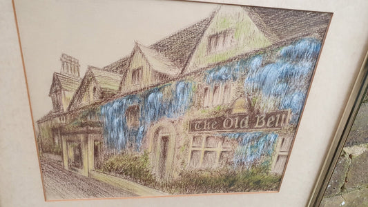 20% OFF AT CHECKOUTRegular price £95.00 GBPRegular priceUnit price / perSale price £95.00 GBP20% OFF AT CHECKOUTOriginal The Old Bell Pub Vintage Pastel Signed Artwork Impressionist British Art Gilt Frame