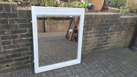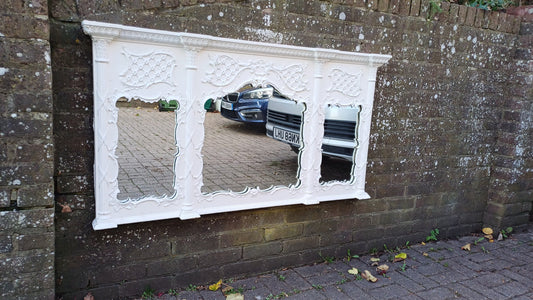 20% OFF AT CHECKOUTRegular price £295.00 GBPRegular priceUnit price / perSale price £295.00 GBP20% OFF AT CHECKOUTHuge Vintage Painted Shabby Chic Wall or Over Mantel Mirror Bespoke Upcycled. 132 x 102 cm