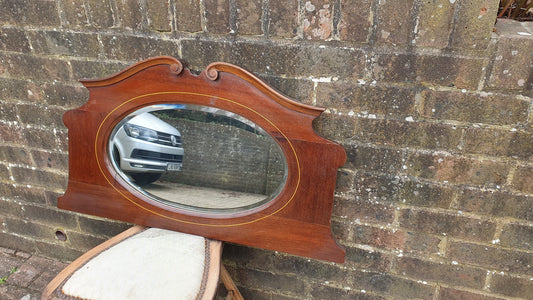 Antique 1920s Mahogany Wall Mirror with Decorative Cornice – Vintage Oval Glass Overmantel Mirror FREE LOCAL Delivery