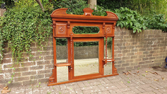 20% OFF AT CHECKOUTRegular price £295.00 GBPRegular priceUnit price / perSale price £295.00 GBP20% OFF AT CHECKOUTHuge Antique Victorian Overmantel Pier Mirror Mahogany/Walnut, Marquetry Inlay, Ornate Carvings, c.1880-1900 FREE HAND Delivery 152 x 137 cm