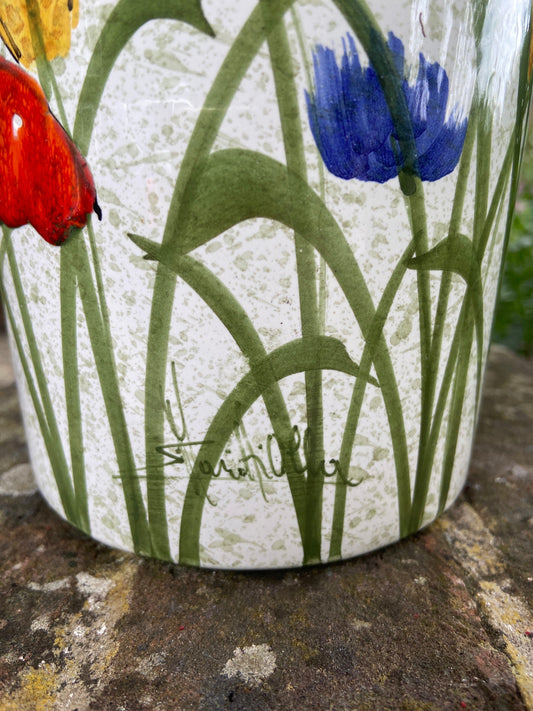 20% OFF AT CHECKOUTRegular price £85.00 GBPRegular priceUnit price / perSale price £85.00 GBP20% OFF AT CHECKOUTHand painted spring flower utensils jar or vase - glazed ceramic, vgc, signed - poppies, cornflowers, corn