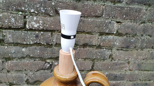 1970s Retro Bottle Shape Table Lamp - wood effect design - working - 40cm tall