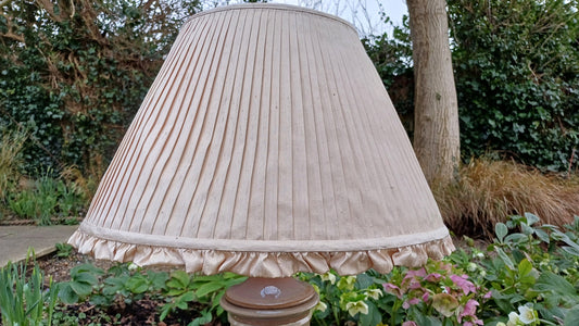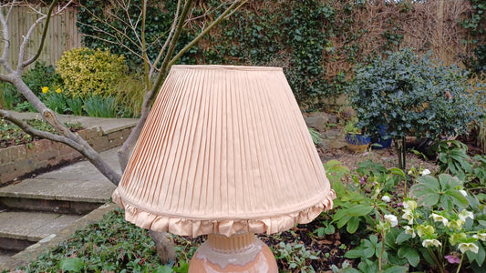 20% OFF AT CHECKOUTRegular price £68.00 GBPRegular priceUnit price / perSale price £68.00 GBP20% OFF AT CHECKOUTHuge Heavy Ceramic Lamp Glazed Pottery Lustre Finish and Glaze. Pleated Silk Effect Lampshade.