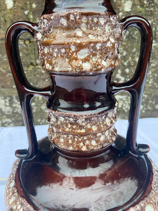 20% OFF AT CHECKOUTRegular price £595.00 GBPRegular priceUnit price / perSale price £595.00 GBP20% OFF AT CHECKOUTRetro 1970s brown pottery table lamp with brown glaze, two tone, and white lava flow glaze detail dripping from the top - working lamp