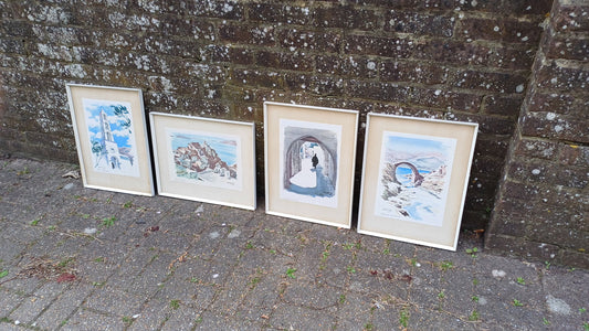 20% OFF AT CHECKOUTRegular price £75.00 GBPRegular priceUnit price / perSale price £75.00 GBP20% OFF AT CHECKOUTFour vintage prints of Greek scenes by Stamatis Vassiliou 1964 , framed in retro wooden white frame, Andros, Santorini, Naxos