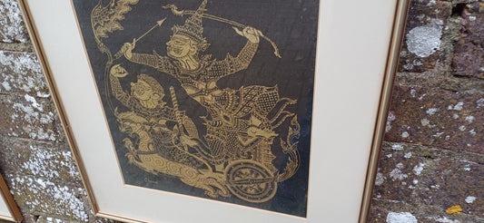 Pair of Oriental Warriors Print on Silk with Gold Frames. Chana.