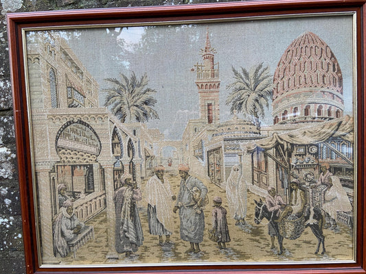 20% OFF AT CHECKOUTRegular price £78.00 GBPRegular priceUnit price / perSale price £78.00 GBP20% OFF AT CHECKOUTTapestry vintage of North African Town scene, outstanding large needlework. 1930s tapestry in a 1990 glazed wooden frame (70cm x 54cm)