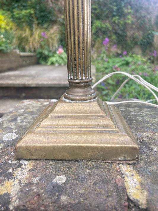 20% OFF AT CHECKOUTRegular price £95.00 GBPRegular priceUnit price / perSale price £95.00 GBP20% OFF AT CHECKOUTGorgeous retro bronze vintage lamp, classical column style with retro gold and yellow shade - working retro table lamp