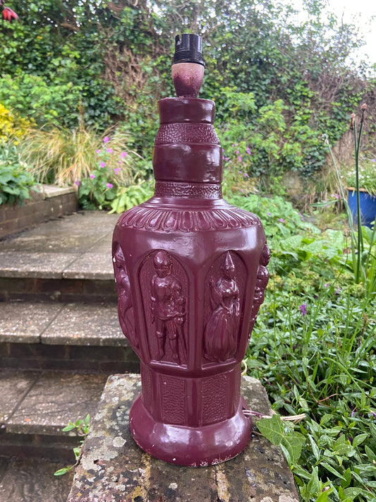 20% OFF AT CHECKOUTRegular price £42.00 GBPRegular priceUnit price / perSale price £42.00 GBP20% OFF AT CHECKOUTQuirky 1960s 70s large ceramic lamp - wine red, maroon, bottle shape, knicks and maidens motif, working lamp, retro lamp, upcycle