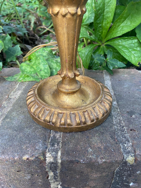 Mid century candlestick gilt gold painted wooden vintage table lamp - working