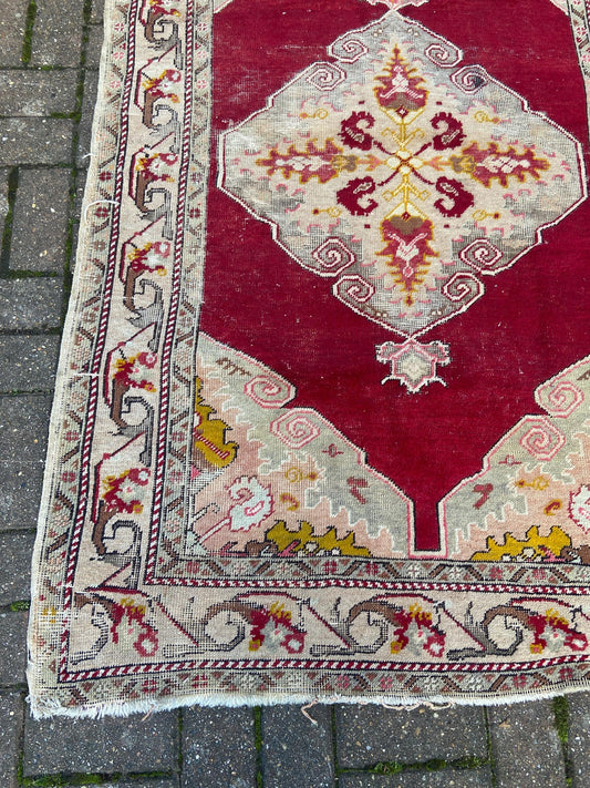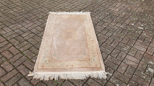 20% OFF AT CHECKOUTRegular price £105.00 GBPRegular priceUnit price / perSale price £105.00 GBP20% OFF AT CHECKOUTVintage woollen rug, aged and charming, pinks reds golds (170cm x 106cm)