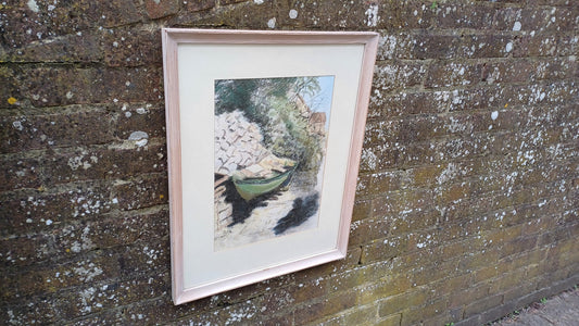 20% OFF AT CHECKOUTRegular price £95.00 GBPRegular priceUnit price / perSale price £95.00 GBPSold outVintage pastel - Greek Fishing Boat, row boat, Kefalonia, Nassos - original art, framed painting