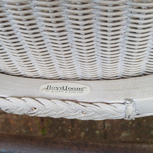 20% OFF AT CHECKOUTRegular price £295.00 GBPRegular priceUnit price / perSale price £295.00 GBP20% OFF AT CHECKOUTLloyd Loom Mid Century White Wicker Cocktail Basket Weave Chair, on black metal legs, labelled