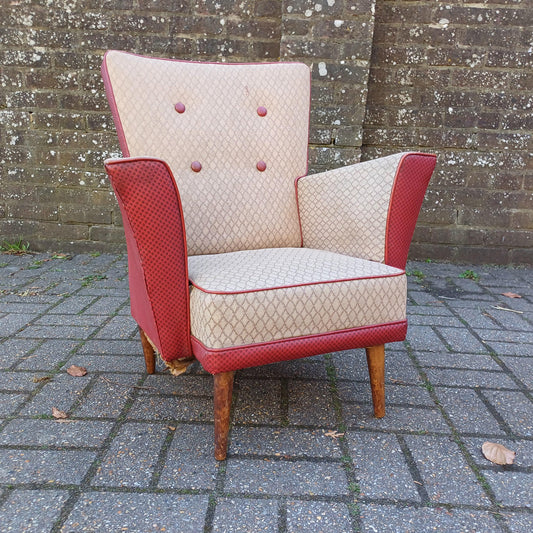 20% OFF AT CHECKOUTRegular price £225.00 GBPRegular priceUnit price / perSale price £225.00 GBP20% OFF AT CHECKOUTQuirky Retro Mid-Century Modern Wingback Armchair Red & Cream Vinyl Upholstery, Wooden Legs