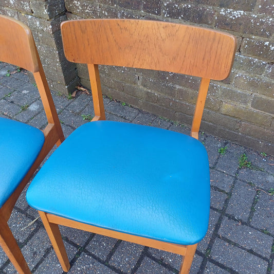 20% OFF AT CHECKOUTRegular price £195.00 GBPRegular priceUnit price / perSale price £195.00 GBP20% OFF AT CHECKOUTPair of Mid-Century Modern Retro Dining Chairs Solid Wood Frames with Blue Vinyl Seats