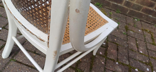 20% OFF AT CHECKOUTRegular price £175.00 GBPRegular priceUnit price / perSale price £175.00 GBP20% OFF AT CHECKOUTVintage White Painted Victorian Cane Chair French Country Style with Curved Frame