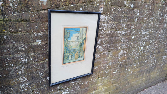 Large Middle East Street Scene El Mouski Rhys Jenkins Print of a Watercolour Signed Marketplace in the Africa Egypt