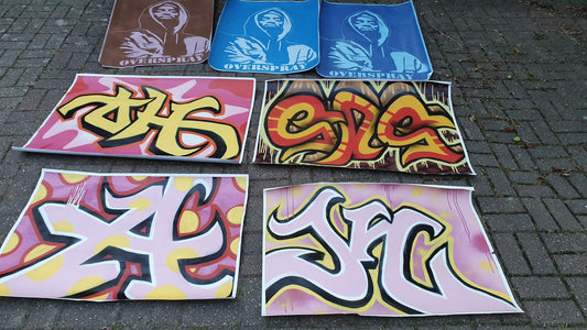Collection of 7 Huge Modern Art Graffiti Prints Screen Print Hand Decorated Highlights Posters. Overspray