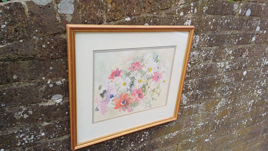 20% OFF AT CHECKOUTRegular price £95.00 GBPRegular priceUnit price / perSale price £95.00 GBP20% OFF AT CHECKOUTOriginal vintage watercolour, water colour of Flowers by Janis Roddick - daisies, poppies, cosmos, framed in gilt glazed vintage frame