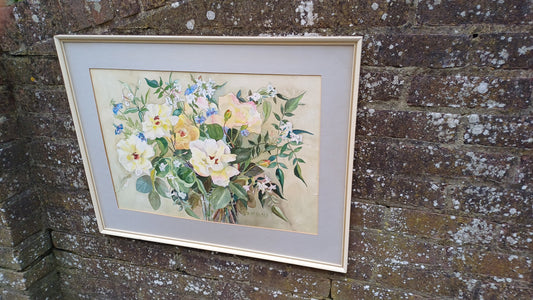 20% OFF AT CHECKOUTRegular price £68.00 GBPRegular priceUnit price / perSale price £68.00 GBPSold outOriginal vintage watercolour still life, flowers in a vase, roses cornflowers, jasmine water colour