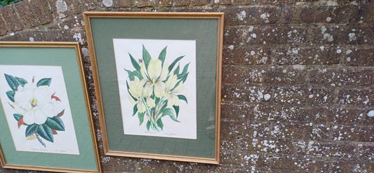 Large vintage botanical studies paintings - Magnolia Grandiflora & Iris Germanicus by Irene Midleton, Countess Midleton, aka Rene Ray actor