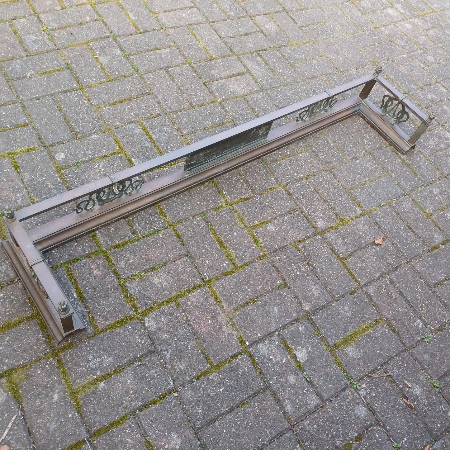 This is a one-piece welded or bolted structure, non-adjustable, designed to sit flush around a fixed hearth. The moulded base and side rails provide both structural support and stylistic continuity. It’s engineered not only as a spark guard but also as a decorative fire surround enhancement, suggesting it once graced a home of distinction.