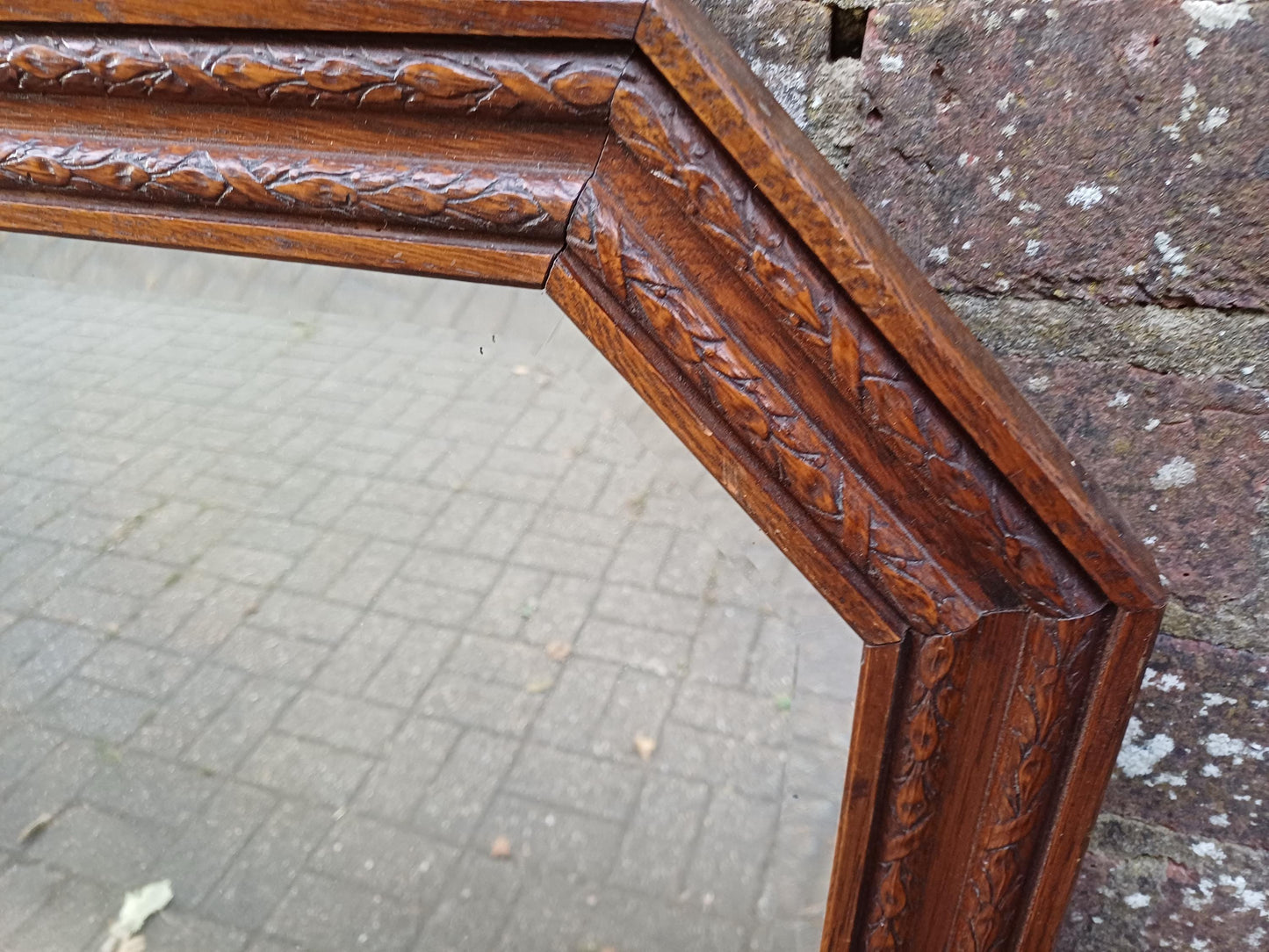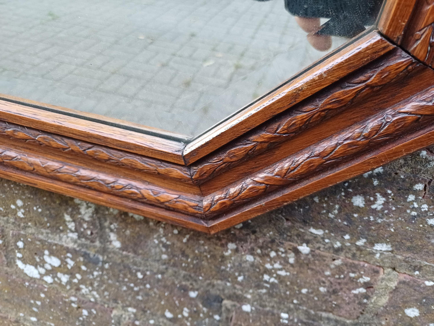 Antique Octagonal Wall Mirror with Oak Carved Wooden Frame and Bevelled Glass – Early 20th Century Vintage Decorative Home Accent