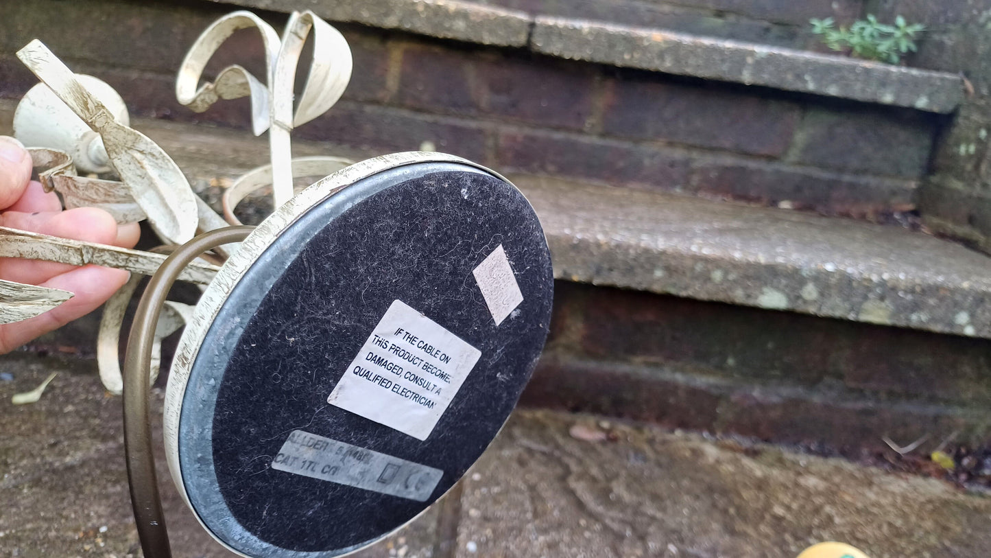 A great shabby chic country metal lamp with 'leaves' and twirly whirly shapes. Cream but rusted and rubbed finish. Great lamp, comes with a glass shade which you may or may not choose to use. Working condition but not professionally tested recently, pat tested in 2022. Quality cable and switch. Slight squiff top where it meets fitment holder- can't be seen with shade - round glass shade