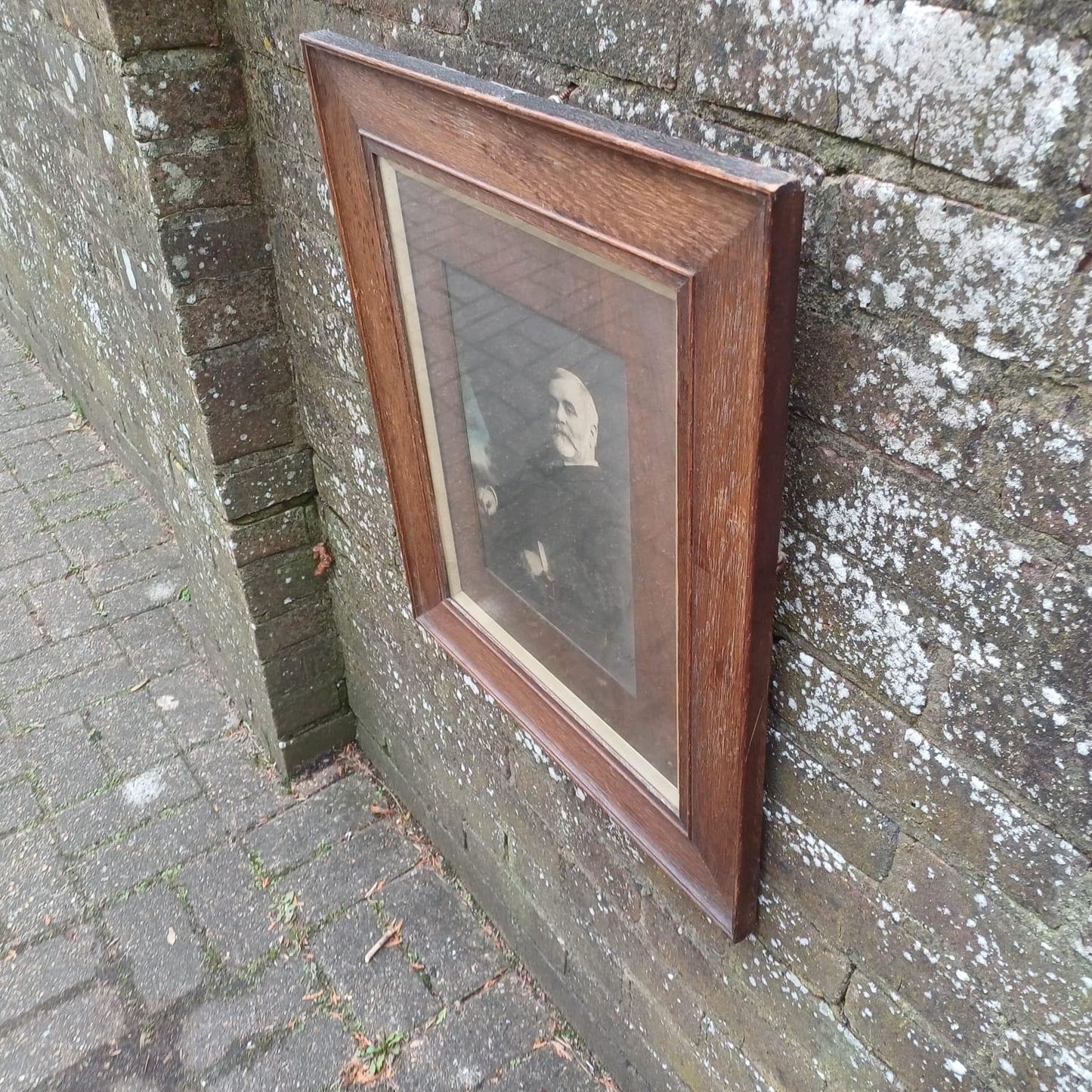 Framed vintage Edwardian photo in stunning wooden antique glazed frame – 1909 antique oak frame, photo by William Skewes, Wigan photographer