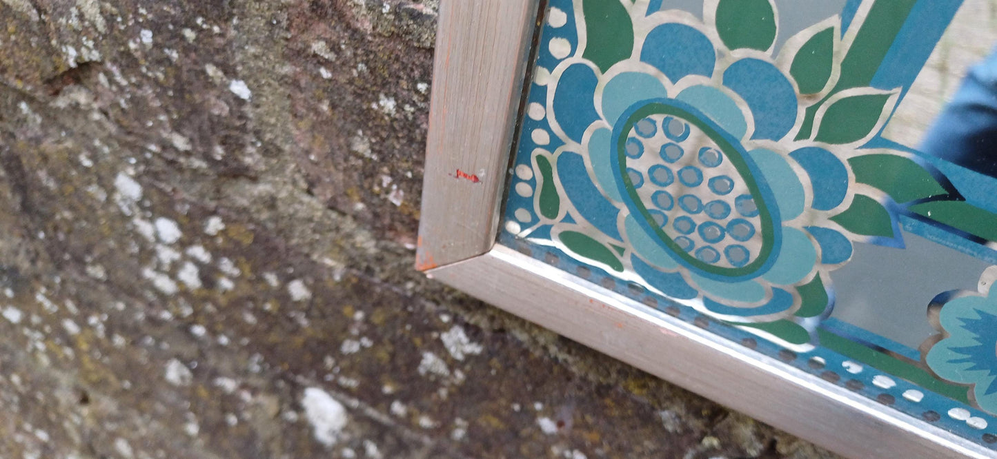 Funky Classic Vintage Retro 70s Wall Mirror ‘Braddell’ Blue Turquoise Flower Decoration.