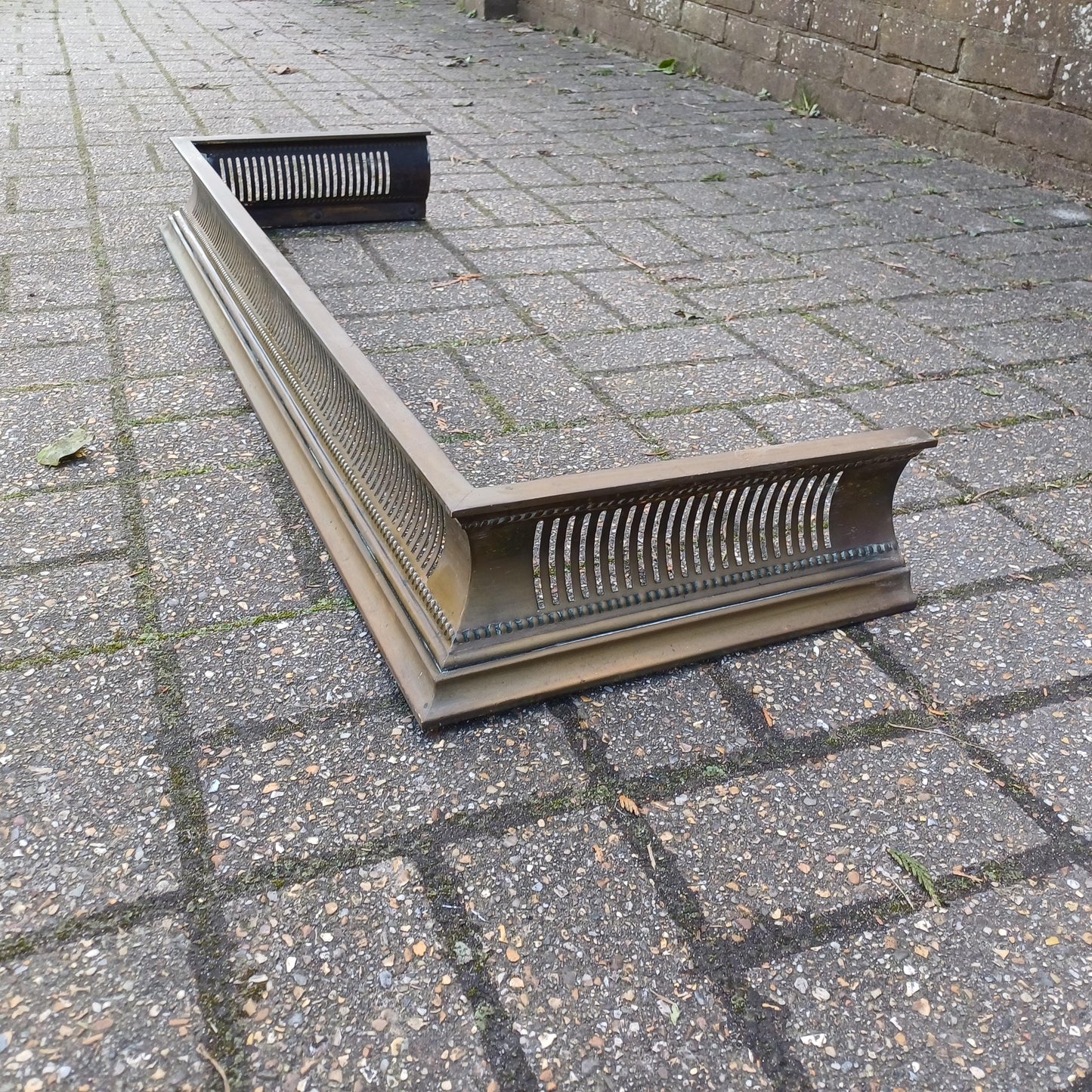 A classic late Victorian/ Edwardian brass fireplace fender with a beautiful pierced decoration.