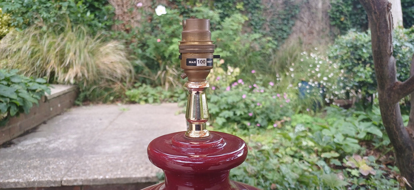 Huge and Heavy Vintage Retro 80s Maroon and Black Table Lamp in Working Order