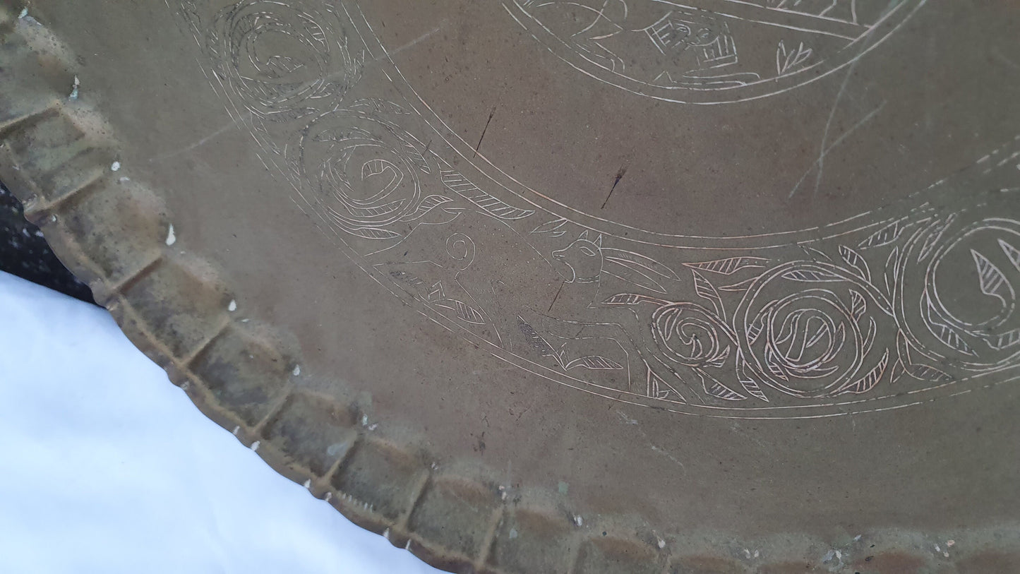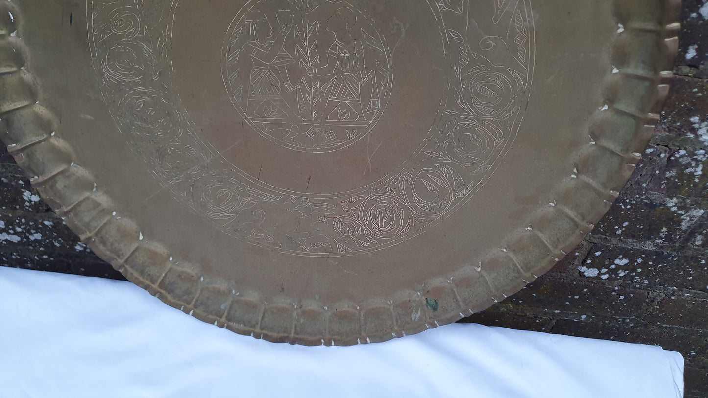 Huge Vintage Brass Charger Far Middle East Platter Charger Benares Table