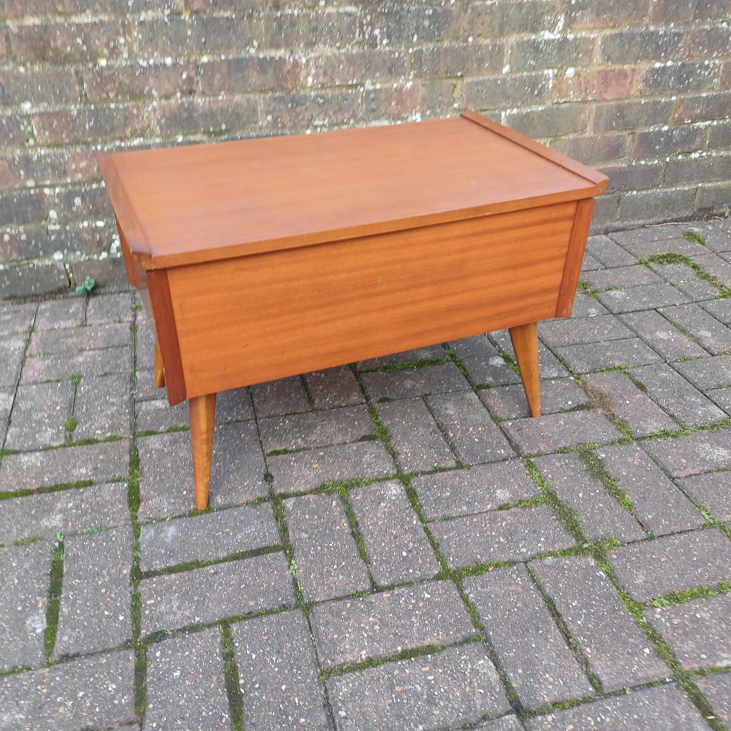 Large Retro Mid-Century Teak Workbox - 1960s Storage with Fitted Interior, Sliding Compartment Iconic Legs - Stylish & Versatile