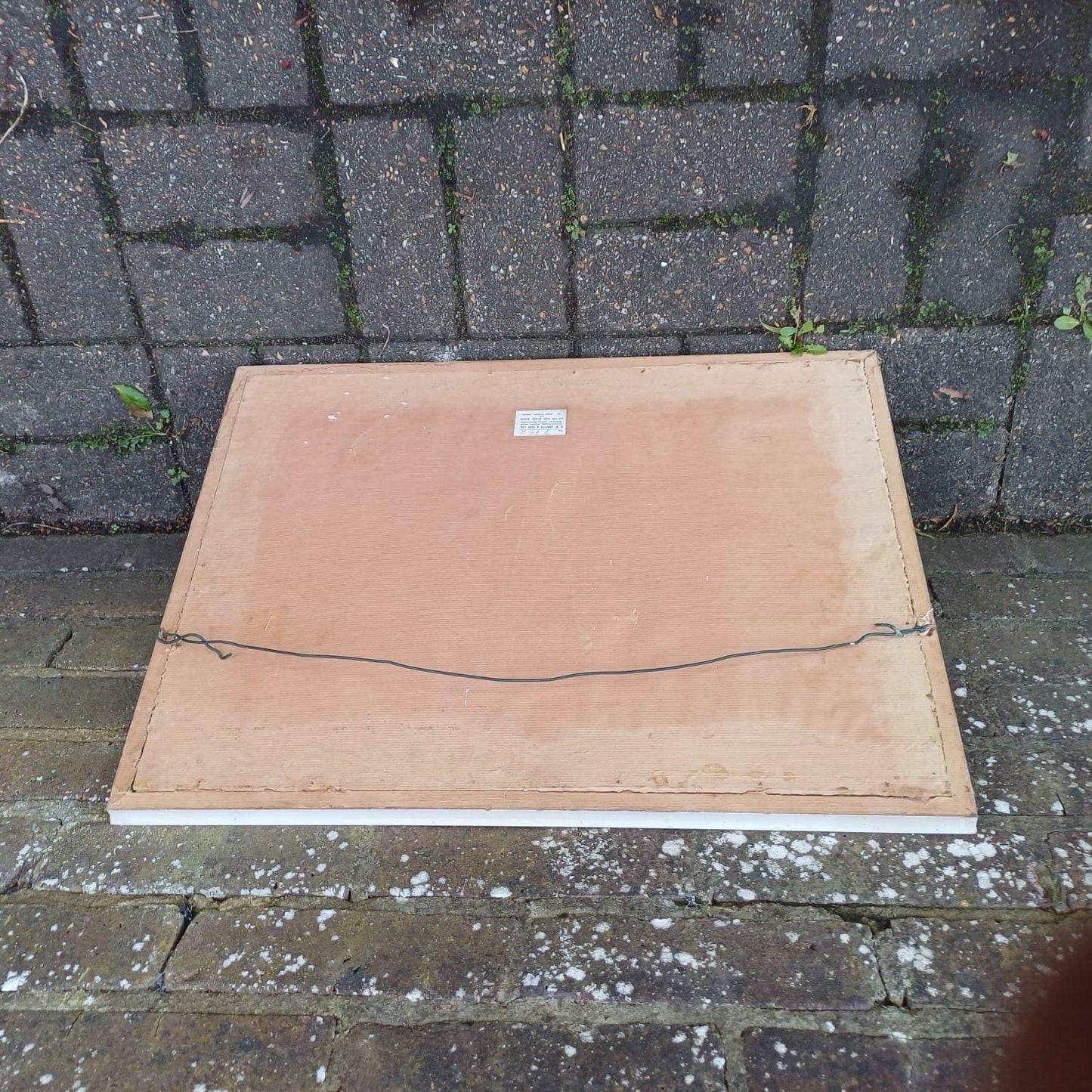 A very lovely bright bold and beautiful retro / mid century picture. Could be an original but being sold as a print as I cannot make out if it is an original without removing from the frame. Fabulous quality and signed! In a great white painted wooden retro frame with glazing. Besides the odd mark on the frame and a back which is a tiny bit loose. This picture is ready to go. Gorgeous sunset pic of boats, buildings, river ... could it be Venice?