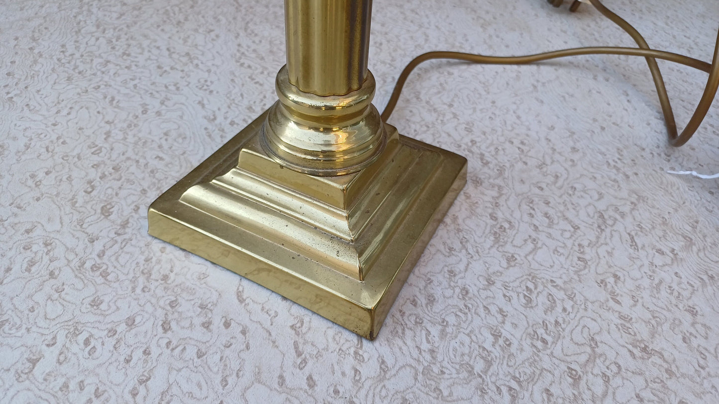 There are lots of these beautiful lamps around but this one is particularly fetching and of excellent quality. What I like most about it is the lacquered finish, it is neither too gold and flashy or muted dull, in fact just a perfect in between so has a nice aged look to it. Beautiful, fluted decorations throughout and other ornate highlights. This is a fairly hefty and weighty table lamp and as such stands well.