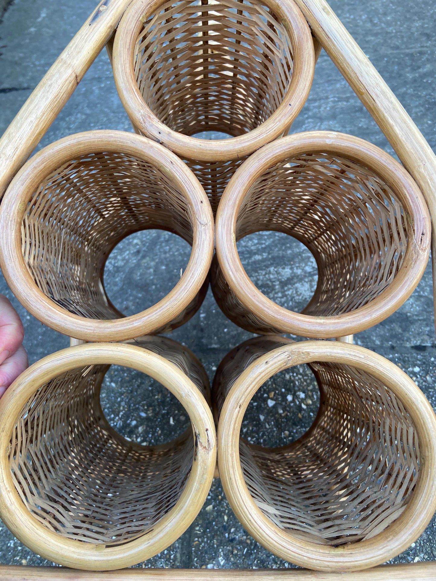 Retro Wine Rack - 5 bottle wine rack, 1970s wicker cane wine rack - VGC