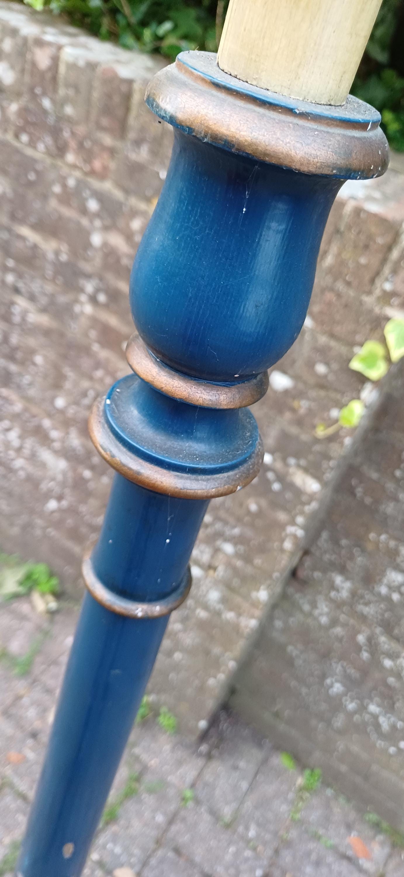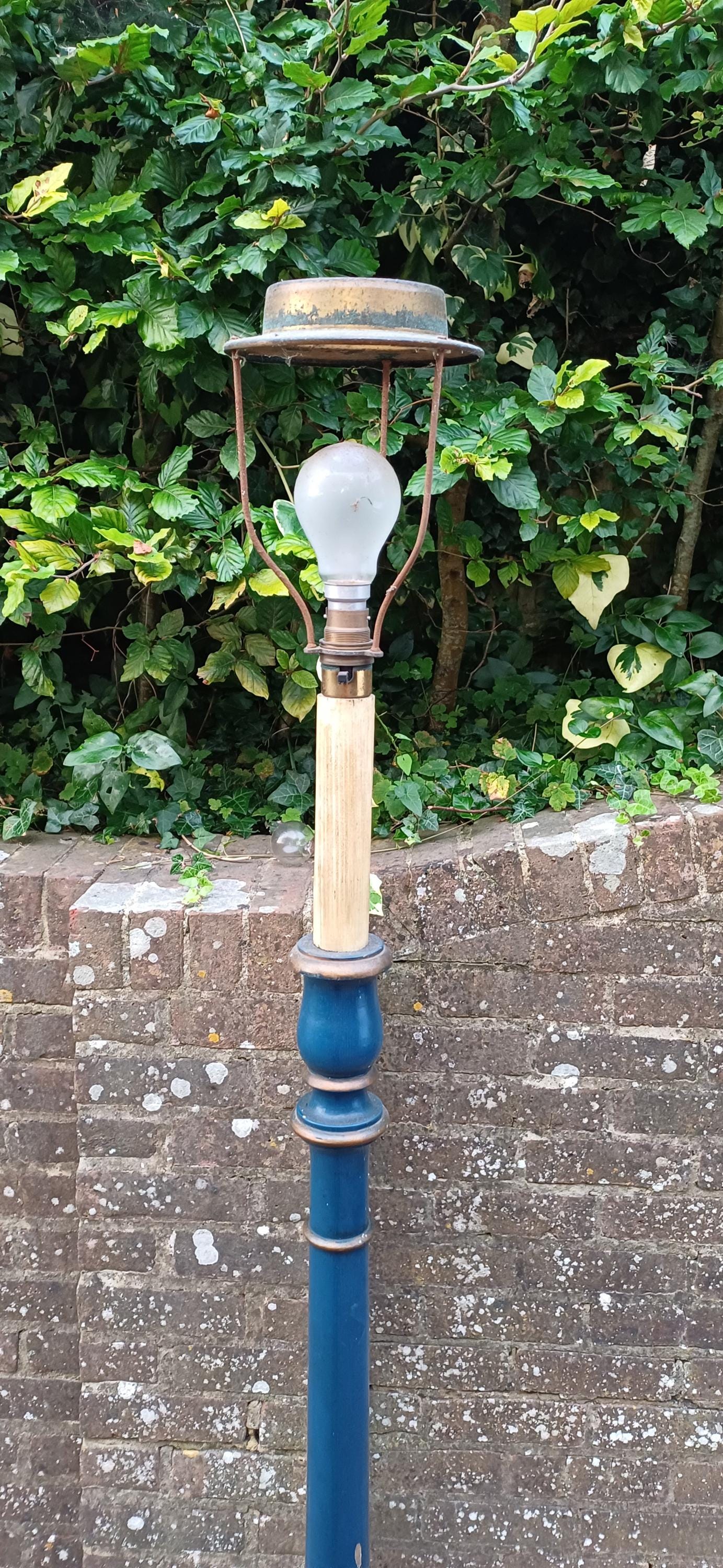 Superb 1920s Vintage Painted Blue and Gold Turned Wooden Standard Lamp