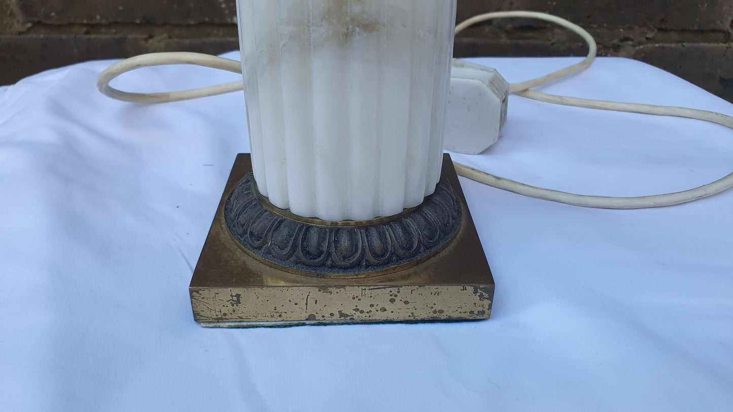 Vintage White Retro Working Onyx and Brass Table Lamp. Working.